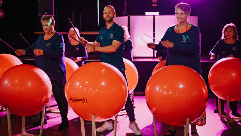 Drums Alive® ist ein einzigartiges, sensorisch-motorisches Programm, bei dem rhythmisches Trommeln auf Gymnastik-(Pezziball-)Bällen mit dynamischen Aerobic-Bewegungen verschmilzt, um ein intensives Herz-Kreislauf- und Koordinationstraining zu erzeugen.